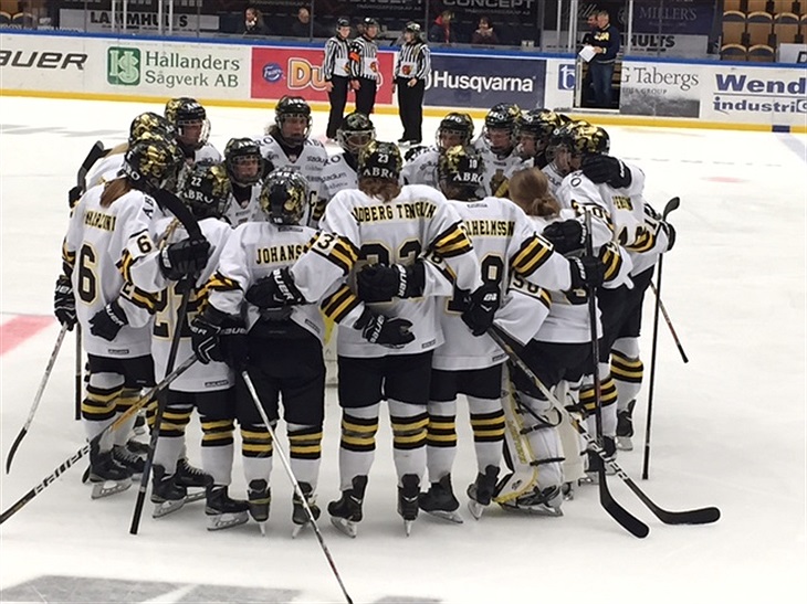 HV71 utnyttjar sitt spel i numerärt överläge och lyckas få in pucken i mål genom Michelle Claesson. Strax efter det drar HV71 på sig ytterligare utvisningar, en för slashing och en för missconduct (lagstraff)
