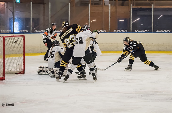 Persson driver själv upp ett anfall från eget bås och tar ett avslut som Hilterud Olsson räddar samtidigt som Persson glider runt målburen och snappar upp en retur från Sara Hjalmarsson och skickar pucken i mål.